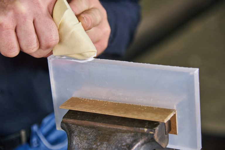 Marginile tăiate, precum și suprafețele relativ mari și curbe, sunt ușor de lustruit cu un disc de lustruire din pânză prinsă într-o bormașină disponibilă în comerț.