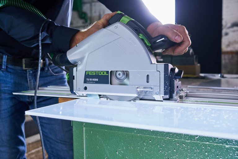 Metoda și unealta cea mai bună pentru tăierea PLEXIGLAS® depinde de grosimea materialului, precum și de forma dorită a muchiei tăiate. În principiu, sunt potrivite atât ferăstraiele circulare manuale, cât și fierăstraiele cu clichet. Pentru plăcile de PLEXIGLAS® cu grosime de până la 4 mm, ați putea folosi, de asemenea, ceea ce se numește fierăstrău circular de mână.